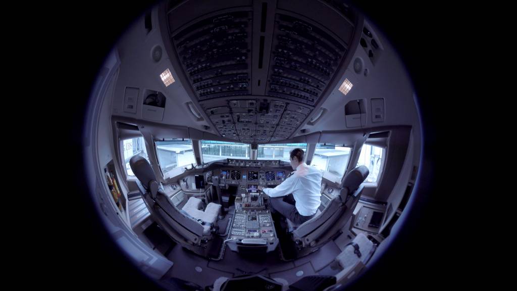 Höre auf dem letzten Film unten, wie sich die Akustik der Stimme im 777-Film ändert. Vom Gate, nach draussen mit Soundeffekten und dann ins Cockpit, wo es klingt, als käme sie aus einem Lautsprecher mit der Interaktion des Piloten und dann, ein sehr trockener Klang (ohne Hall oder Echo) in der ersten Klasse, der der Szene ein Gefühl von Qualität und Gemütlichkeit verleiht. Verglichen mit dem Sound im Frachtraum zum Beispiel: Sehr viel Hall, überhaupt nicht gemütlich. Er ist am besten mit Kopfhörern wahrnehmbar.