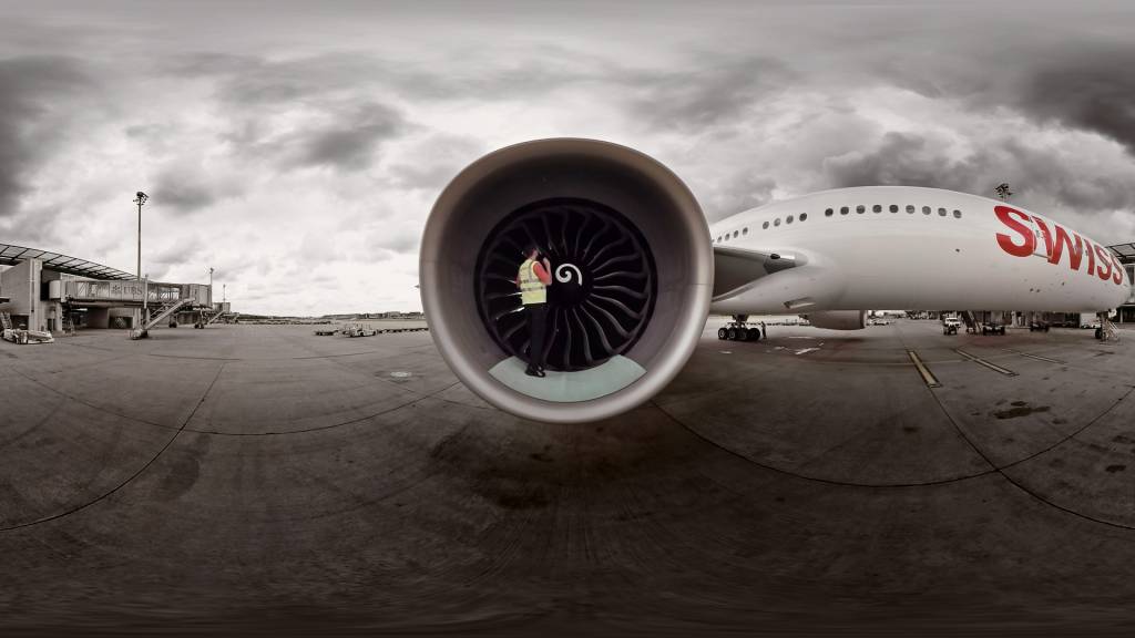 Im vergangenen März trat SWISS International Airlines mit einem sehr offenen Briefing an uns heran, um 360-Grad-Inhalte zu erstellen. Der Ehrgeiz war, etwas zu schaffen, das heraussticht und die neue Technologie voll ausnutzt. Mit dem Fokus auf Messen und Messeauftritte. Wir schlugen vor, die Flugzeuge sich selbst präsentieren zu lassen, denn wir wollten einen Charakter – jemanden, der einen durch die Geschichte führt. Da ist die selbstbewusste Boeing 777, der Chef, das neue Flaggschiff. Und da ist die smarte Dame, die Bombardier CS100, die Schönheit der Lüfte, das jüngste Mitglied der SWISS Familie.
