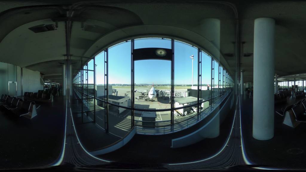 Um Schieberegler und Stativ zu retuschieren und zu entfernen, ist es notwendig, das Equirectangular in eine brauchbare Perspektive, eine Cube-Map, umzuwandeln. Wir haben dies mit einem After Effects Roundtrip und dem Plugin Skybox von Mettle gemacht.