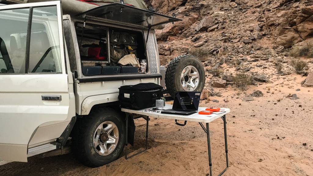 For example, for Namibia, we were looking for a drone. There’s basically only one small enough to take with you as a tourist and still have a good picture: the DJI Phantom 4 Pro. But then you spend a day figuring out which settings are best. You go online, read the reviews, and they turn out to be unusable. Nobody tells you that if you go 50p, you have a color shift in magenta, and a halved resolution. Or that you can’t use an aperture above 10, or that the setting for no-added sharpness is never zero.