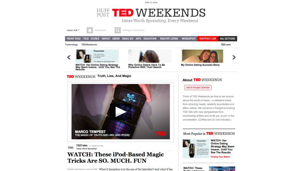 IPod Magic wurde an der TED Global 2011 uraufgeführt und seither an vielen weiteren Anlässen von Marco Tempest präsentiert.