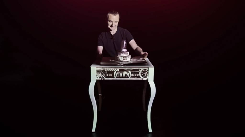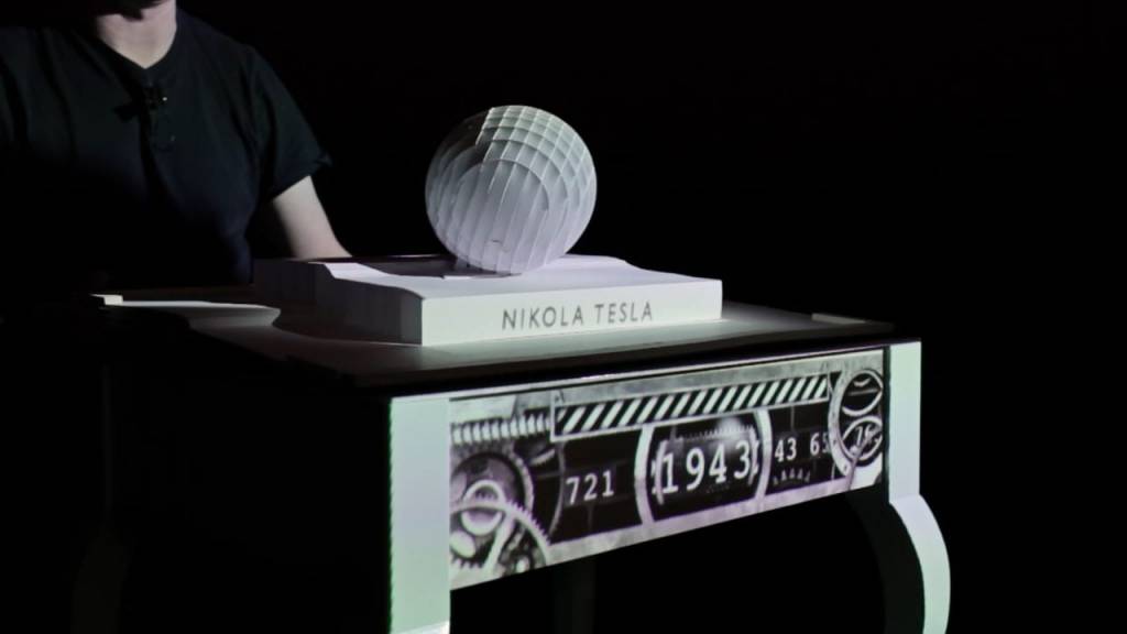 Ausgestattet mit einem weissen Tisch und einem Projektor präsentierte Marco Tempest an der TED Gobal 2012 die Geschichte von Nikola Tesla.