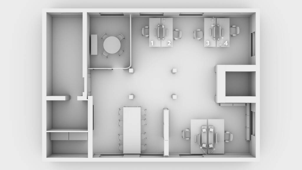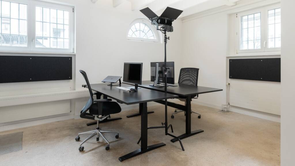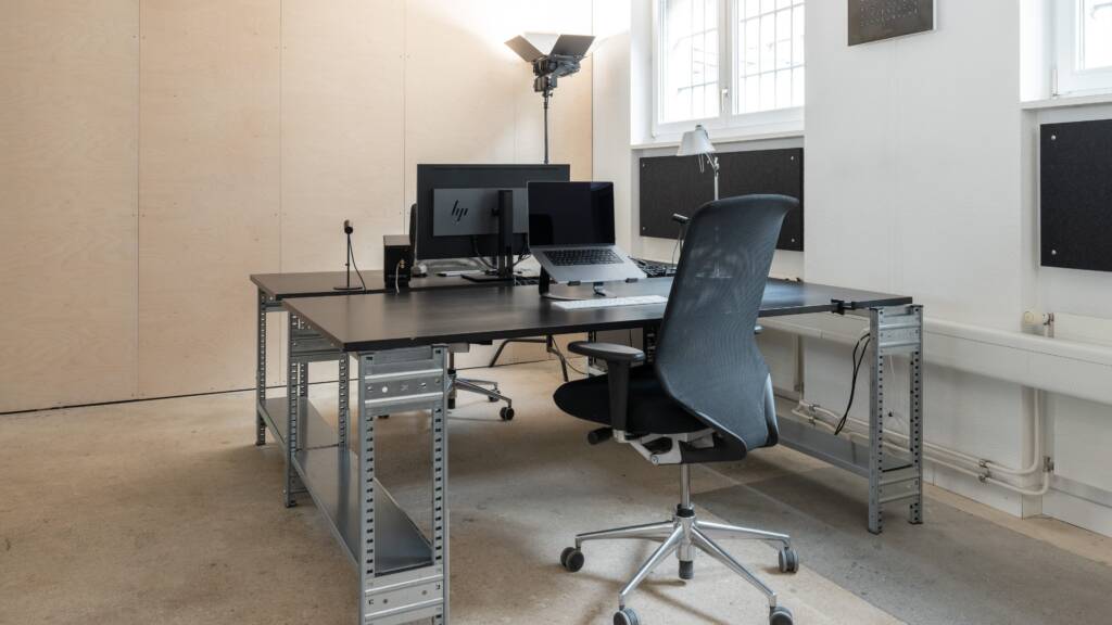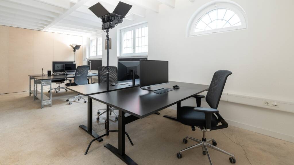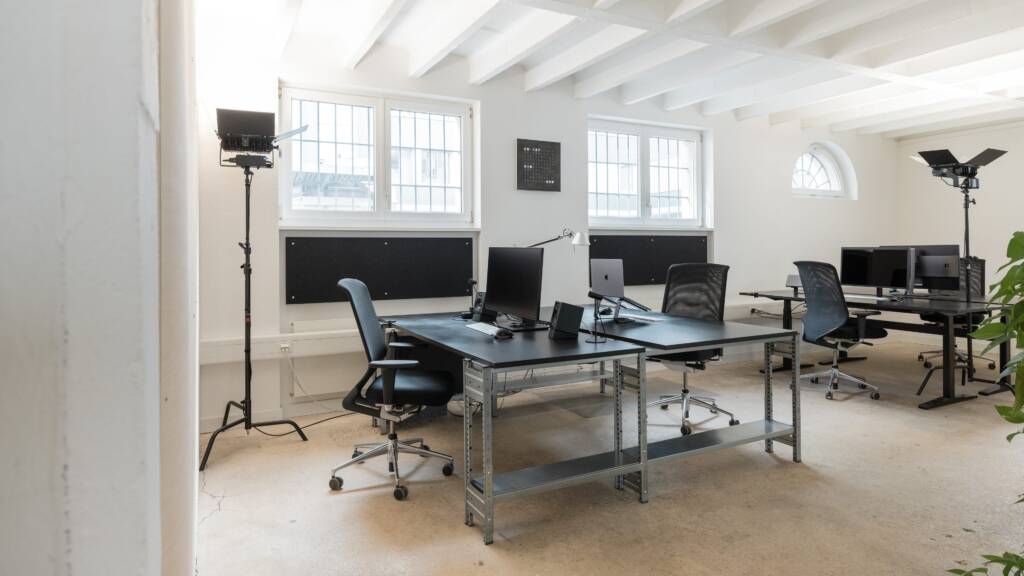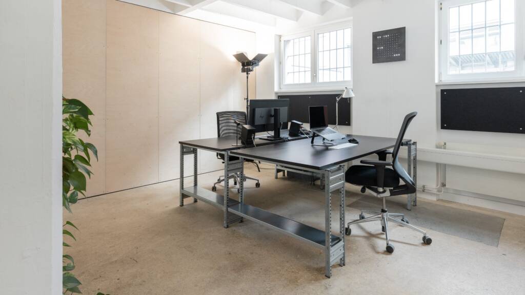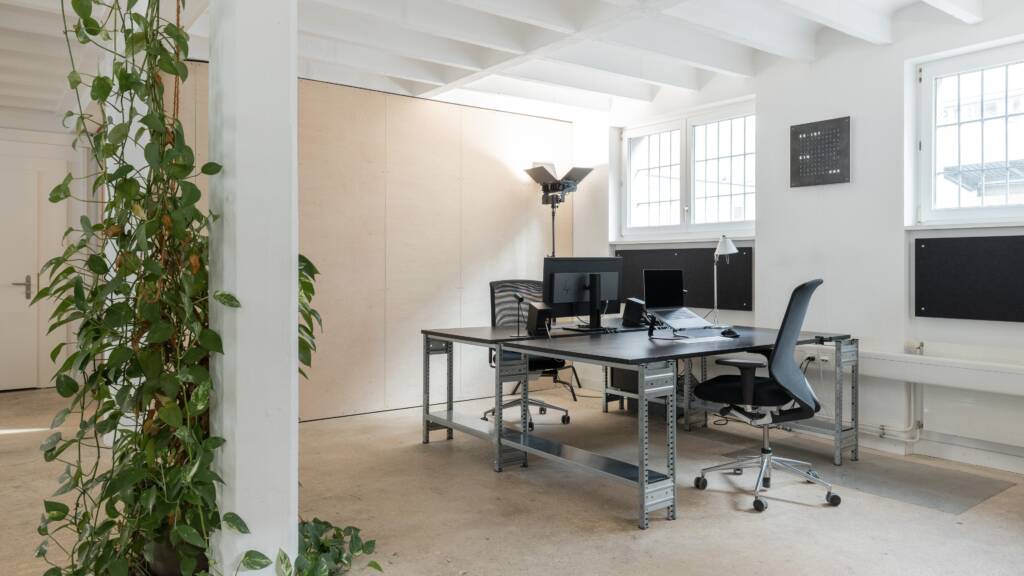 Ich vermiete vier Arbeitsplätze im Studio. Mit uns beiden (André und Kevin) sind wir dann zu sechst auf über 120 m².